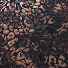 Extra luxe heavy-weight compression nylon spandex tricot featuring a wild metallic big cat foil print. Foil print is so badass in burgundy and tan on black ground to create such a magical effect....and is also available on a taupe ground.