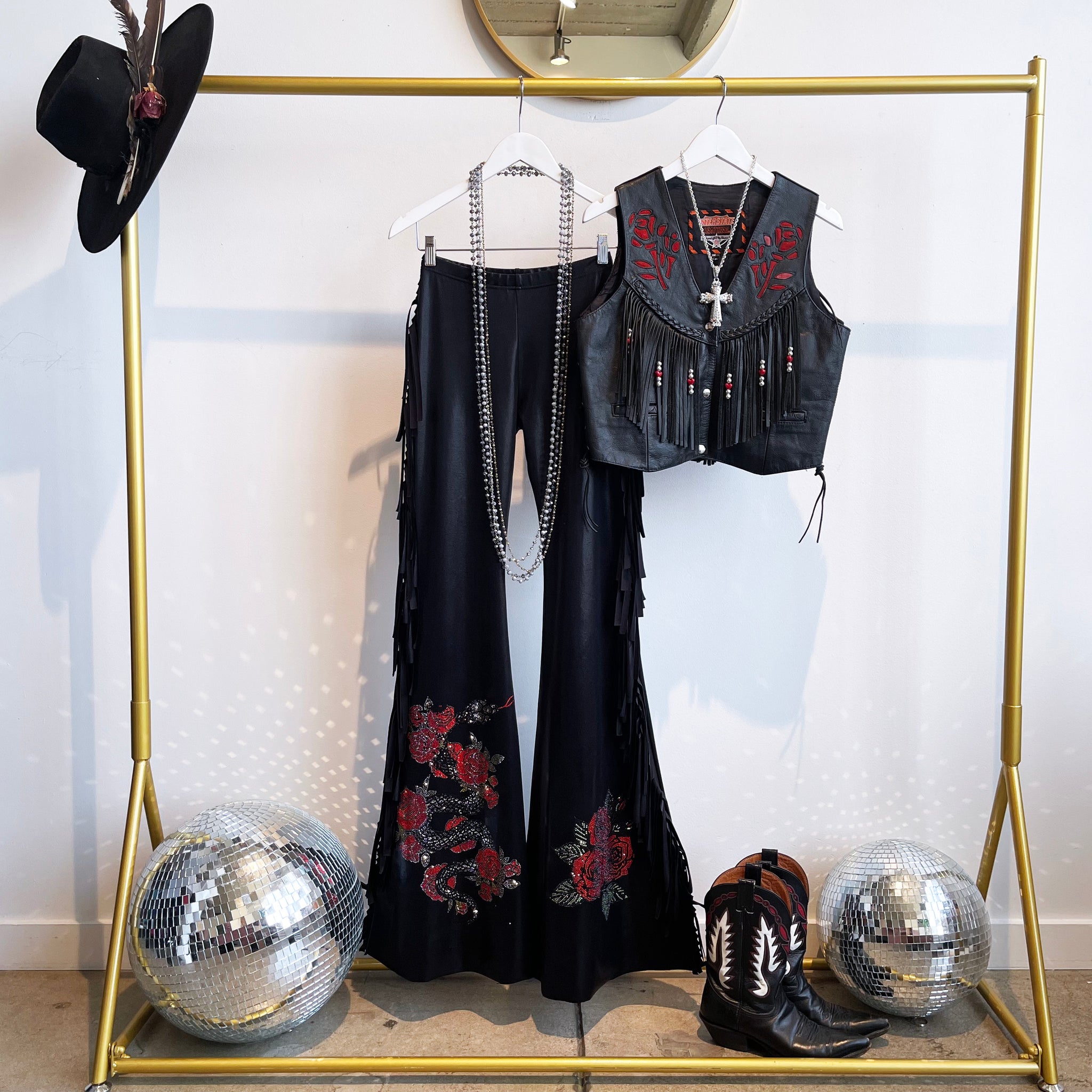 If you’ve ordered our Run the World liquid leather bells before — this is that same fabric base, just fully rockstar’d out.