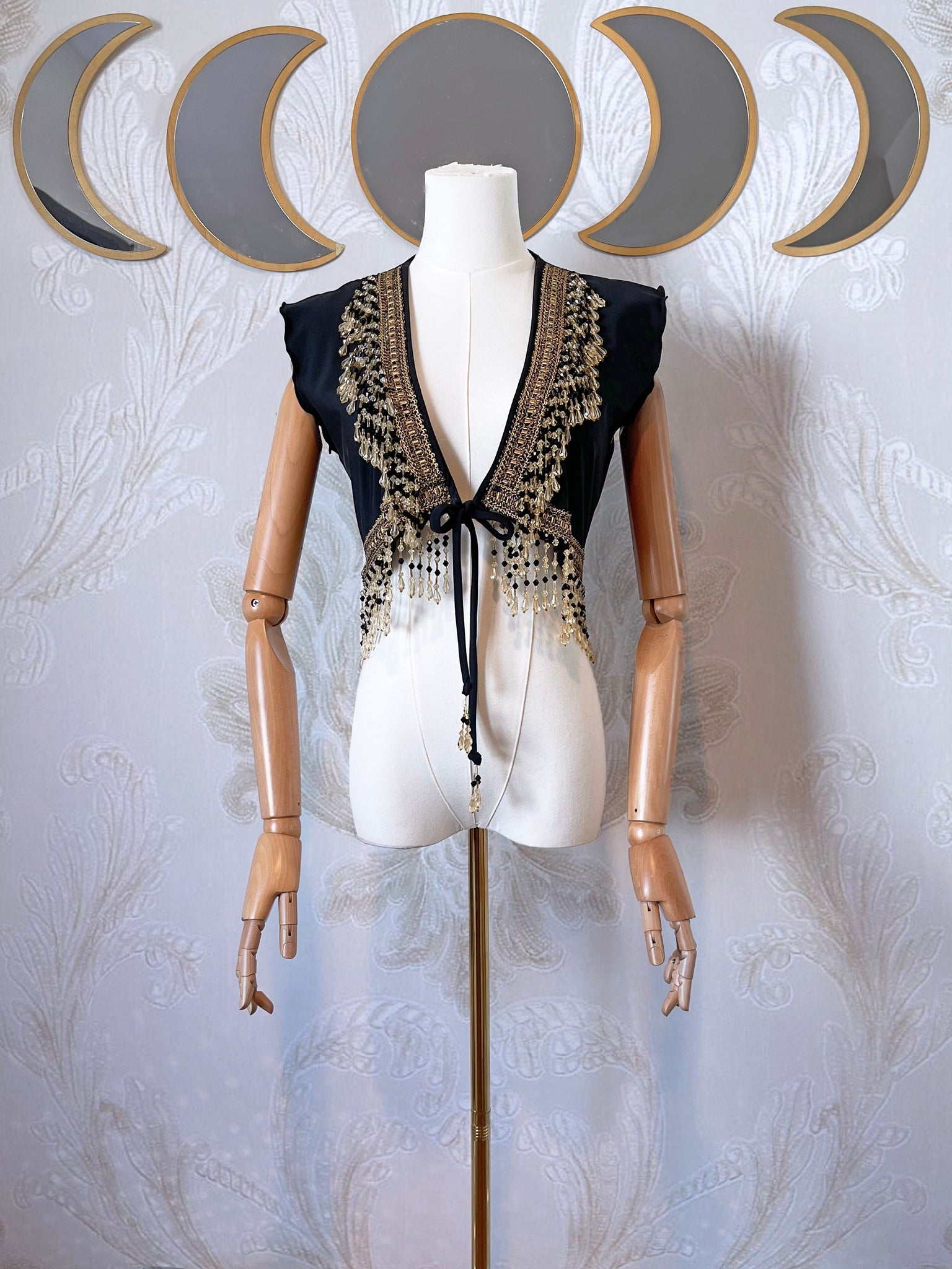 A sexy-cool bohemian dream come true — our Dream Catcher top is dripping in vintage charm and handcrafted detail. Designed with exquisite vintage braided trim and crystal beading cascading along the front, this piece catches the light (and attention) with every move.